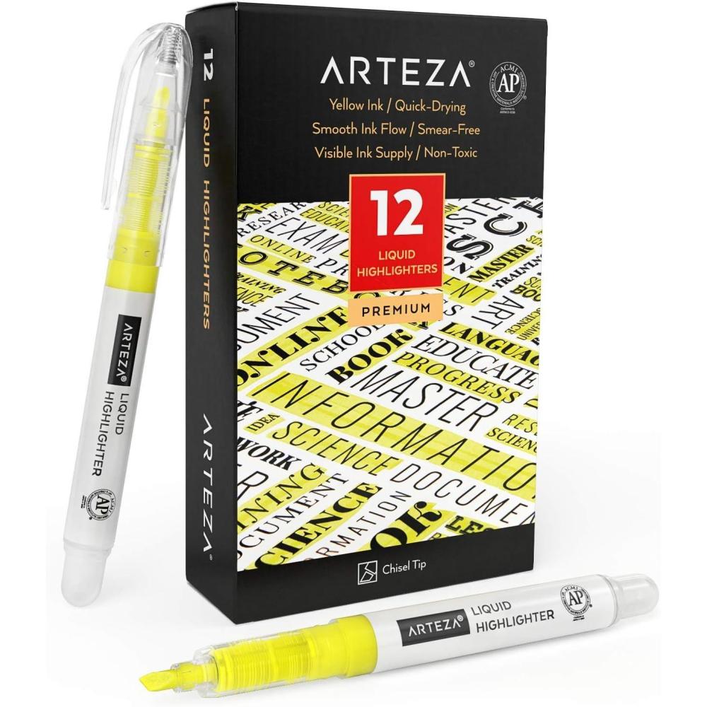 ARTEZA Liquid Highlighter Pens, Set of 30, Narrow Chisel Tip, 5 Assorted Colors(Yellow)