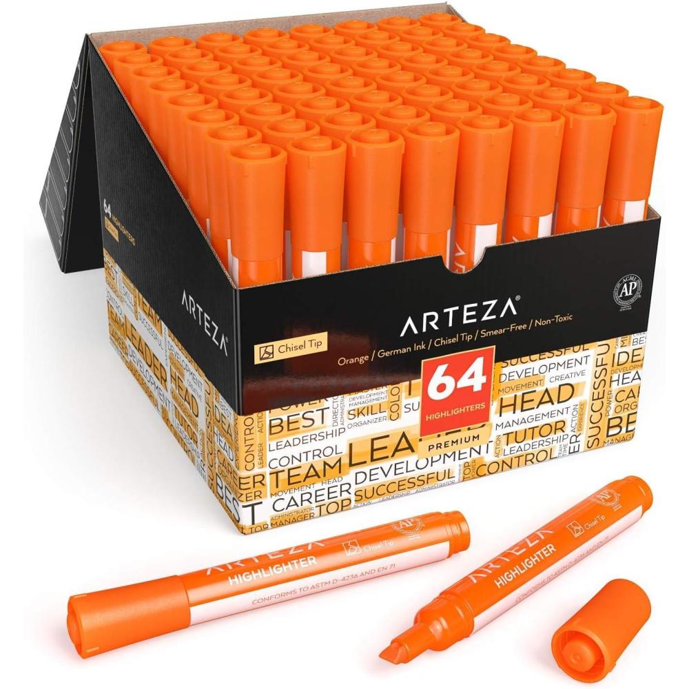 ARTEZA Yellow Highlighters in Bulk, Pack of 64, Chisel Tip Markers(Orange)