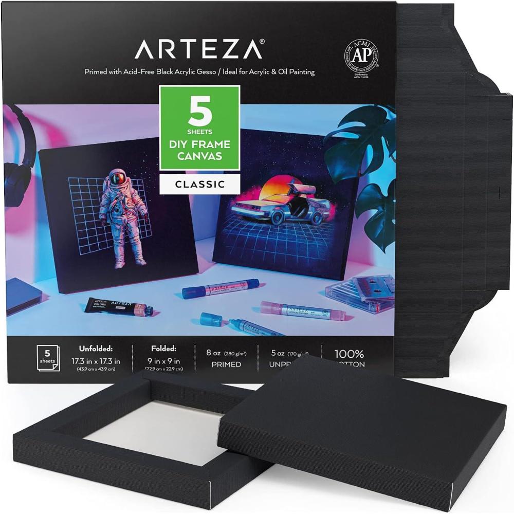 ARTEZA DIY Frame Canvases for Painting, 5 Sheets, 8.5×11 Inches, Black(9 x 9 inches)
