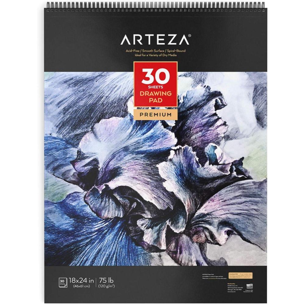 ARTEZA Drawing Paper Pad, 18 x 24 Inches, Pack of 1, 30 Sheets, Spiral Bound Heavyweight White Paper with Micro-Perforation