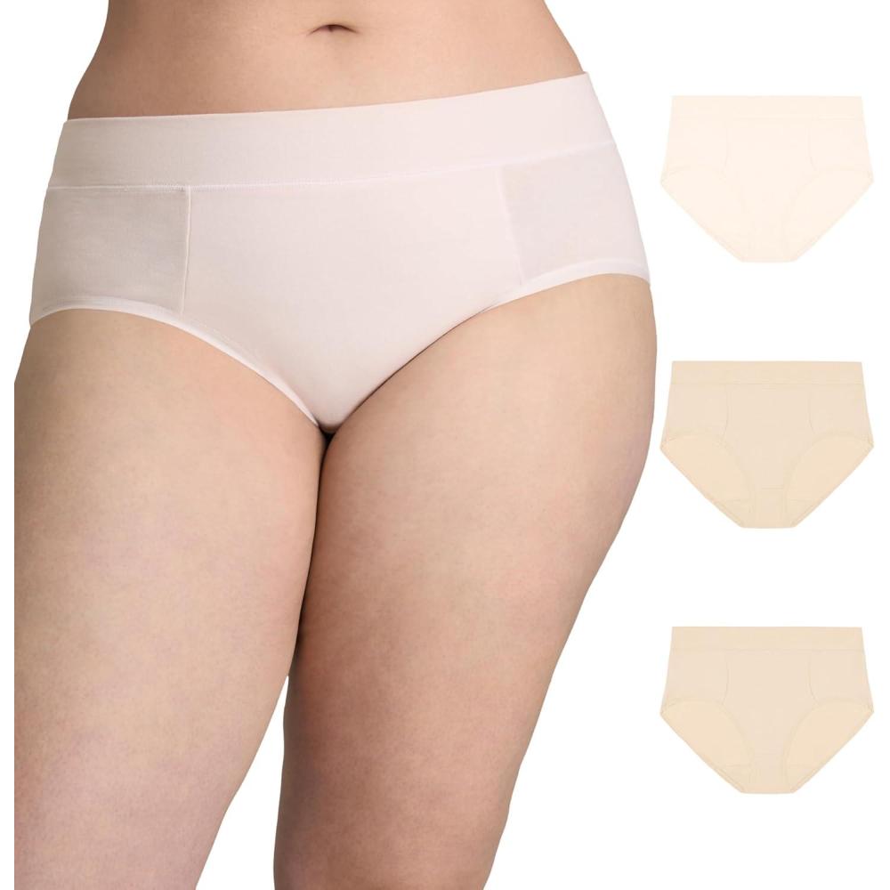 PLAYTEX womens High-cut Brief Underwear Pack, Plus-size Underwear Available, Tummy Smoothing, 3-pack(Heirloom White/Almond/Almond)