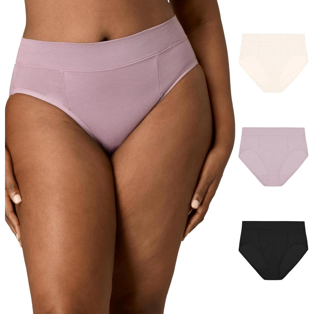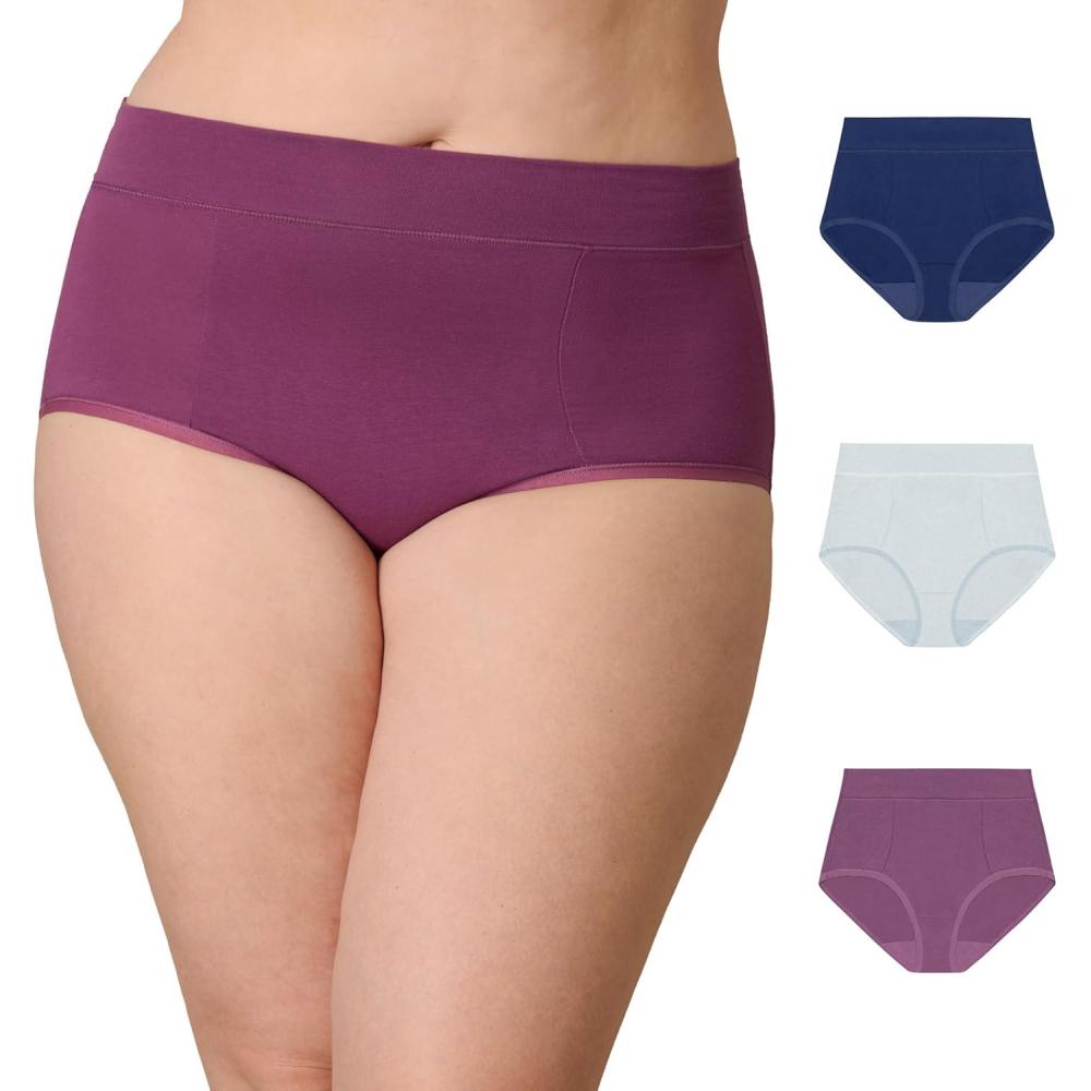 PLAYTEX womens High-cut Brief Underwear Pack, Plus-size Underwear Available, Tummy Smoothing, 3-pack(Sail Away Navy/New Rain Cloud Heather/Plum Dandy)