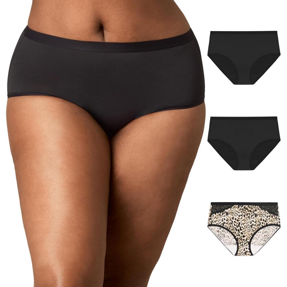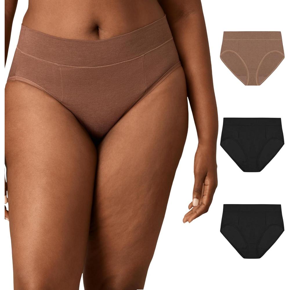 PLAYTEX womens High-cut Brief Underwear Pack, Plus-size Underwear Available, Tummy Smoothing, 3-pack(Dressed in Black/Dressed in Black/Bronzed Chestnut)