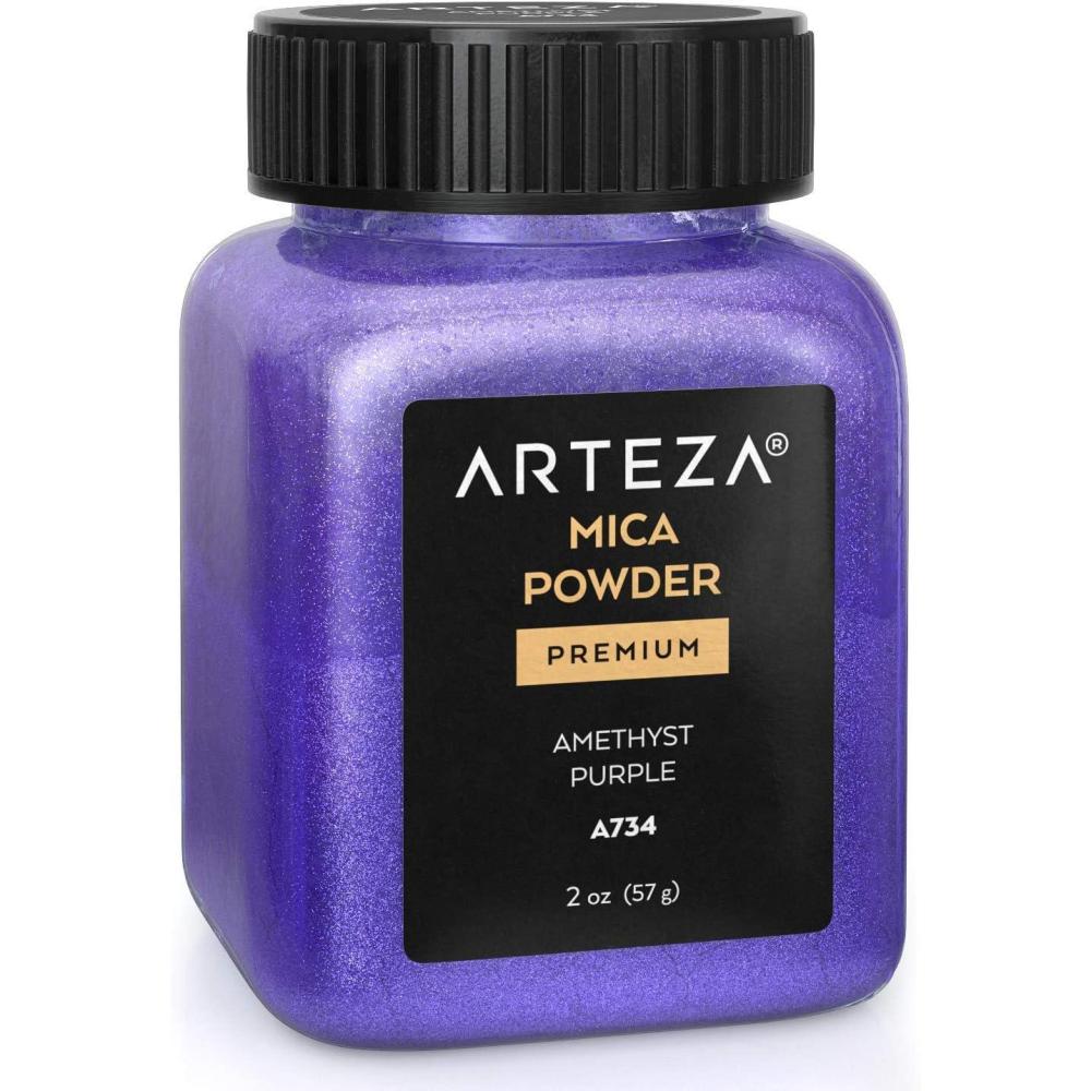 ARTEZA Mica Powder for Epoxy Resin, Set of 60, Assorted Colors, 0.18 oz Bottles, Mica Powder for Candle Making and DIY Crafts(Amethyst Purple A734)