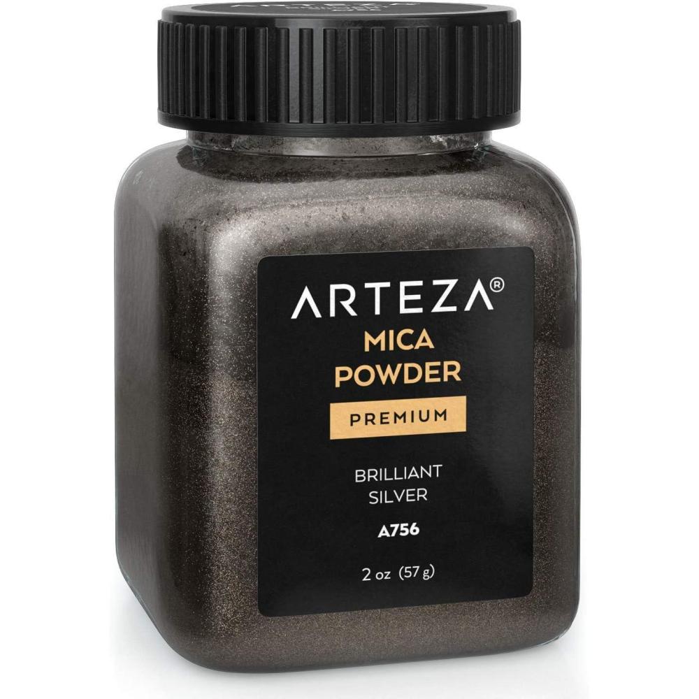 ARTEZA Mica Powder for Epoxy Resin, Set of 60, Assorted Colors, 0.18 oz Bottles, Mica Powder for Candle Making and DIY Crafts(Brilliant Silver A756)