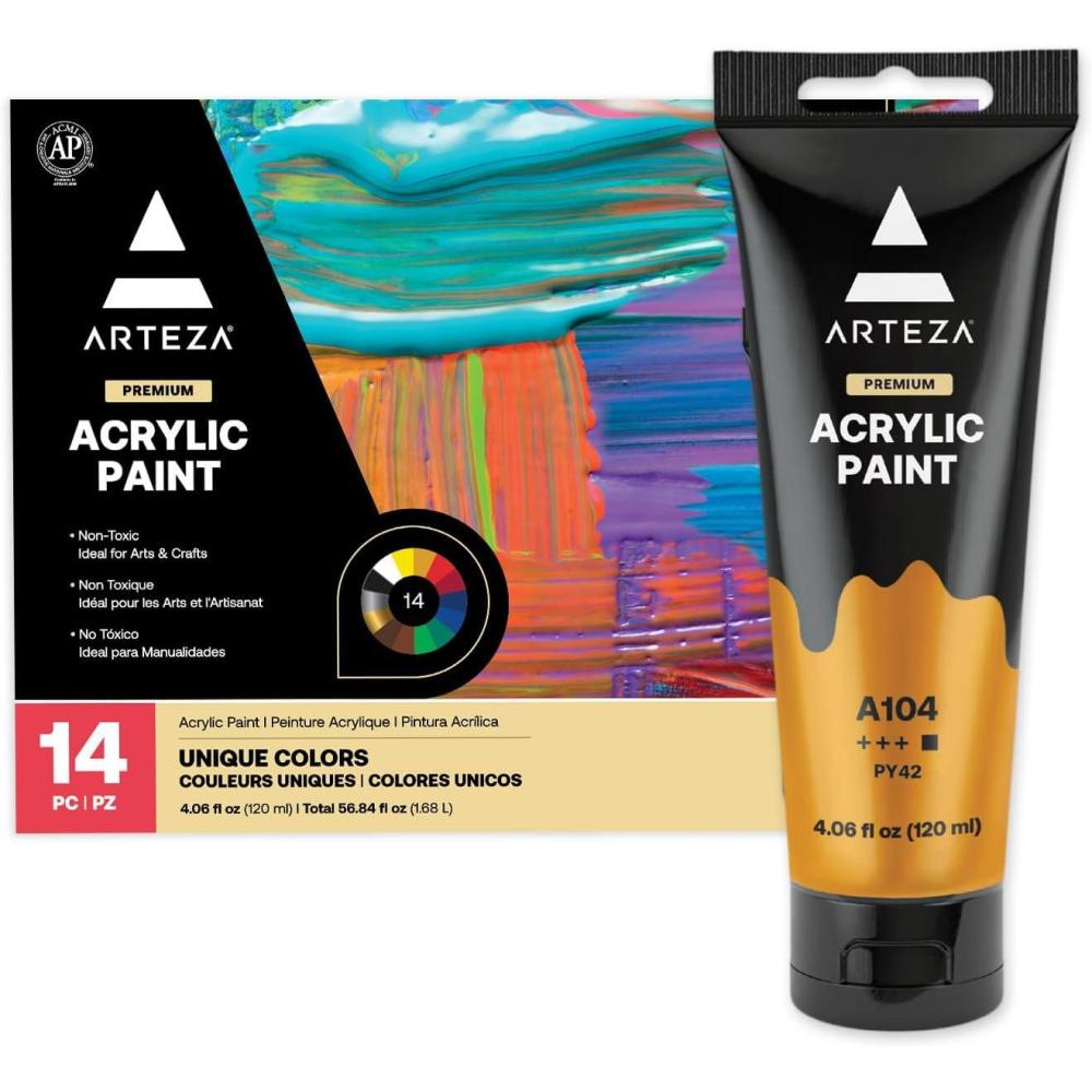 ARTEZA Acrylic Paint Set of 14 Colors, 4.06 Ounce Tubes, Non-Toxic Acrylic Artist Paints. Art Supplies for Painting(14 Pack)