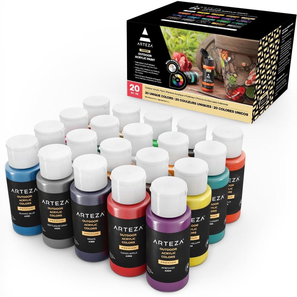 ARTEZA Acrylic Paint Set of 14 Colors, 4.06 Ounce Tubes, Non-Toxic Acrylic Artist Paints. Art Supplies for Painting(20 Pack)
