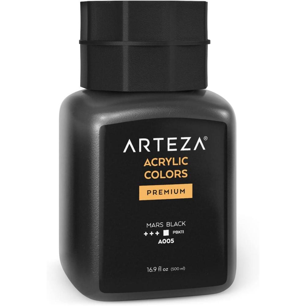 ARTEZA Acrylic Paint, A104 Yellow Ochre, 16.9 fl oz, 500ml Jar, Opaque, Quick-Drying, Acrylic Paints for Painting on Canvas, Paper, Wood(A005 Mars Black)