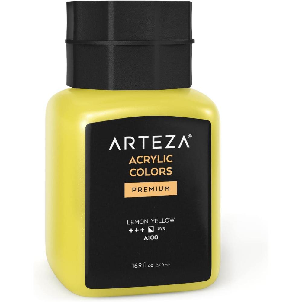 ARTEZA Acrylic Paint, A104 Yellow Ochre, 16.9 fl oz, 500ml Jar, Opaque, Quick-Drying, Acrylic Paints for Painting on Canvas, Paper, Wood(A100 Lemon Yellow)