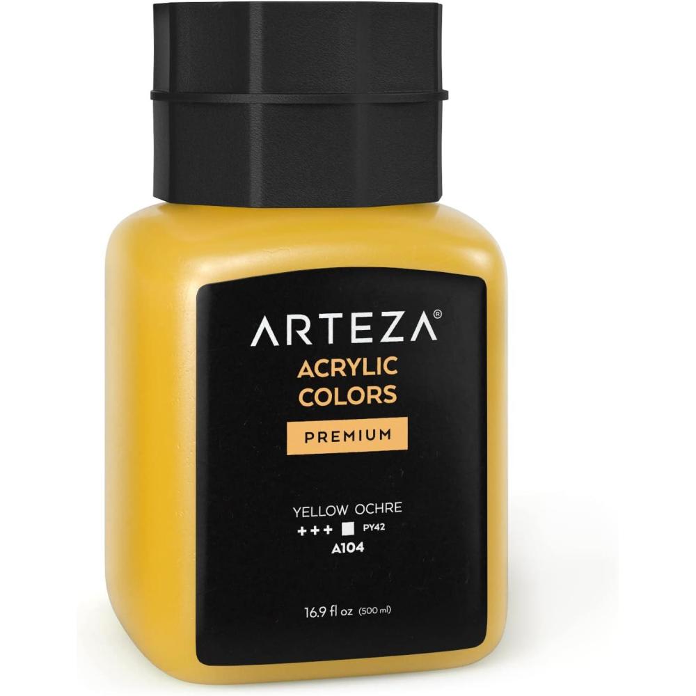 ARTEZA Acrylic Paint, A104 Yellow Ochre, 16.9 fl oz, 500ml Jar, Opaque, Quick-Drying, Acrylic Paints for Painting on Canvas, Paper, Wood(A104 Yellow Ochre)