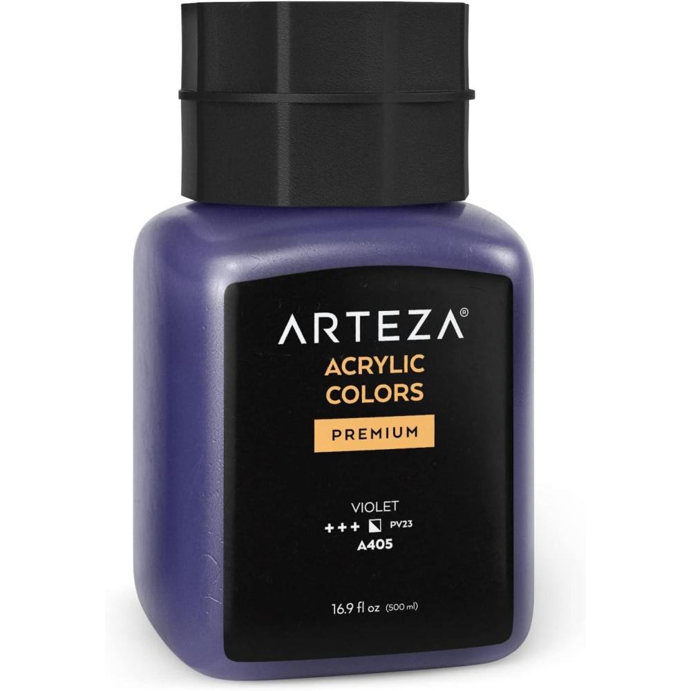 ARTEZA Acrylic Paint, A104 Yellow Ochre, 16.9 fl oz, 500ml Jar, Opaque, Quick-Drying, Acrylic Paints for Painting on Canvas, Paper, Wood(A405 Violet)