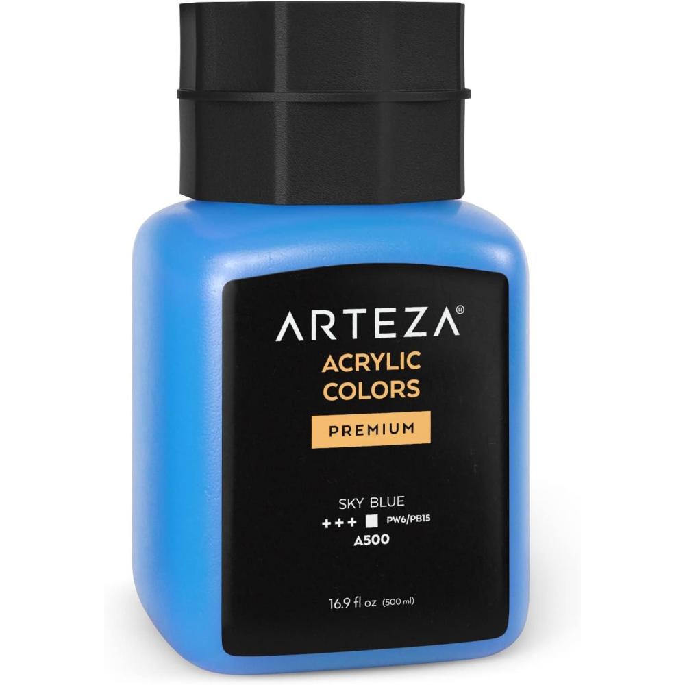 ARTEZA Acrylic Paint, A104 Yellow Ochre, 16.9 fl oz, 500ml Jar, Opaque, Quick-Drying, Acrylic Paints for Painting on Canvas, Paper, Wood(A500 Sky Blue)