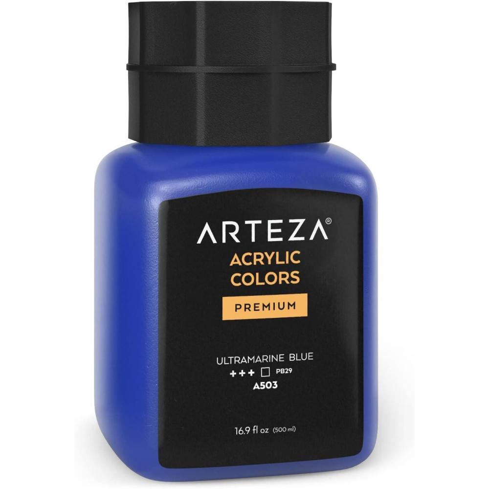 ARTEZA Acrylic Paint, A104 Yellow Ochre, 16.9 fl oz, 500ml Jar, Opaque, Quick-Drying, Acrylic Paints for Painting on Canvas, Paper, Wood(A503 Ultramarine Blue)