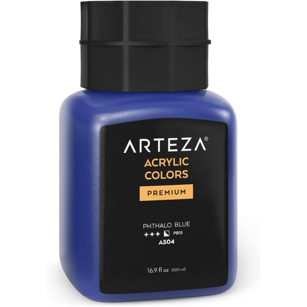 ARTEZA Acrylic Paint, A104 Yellow Ochre, 16.9 fl oz, 500ml Jar, Opaque, Quick-Drying, Acrylic Paints for Painting on Canvas, Paper, Wood(A504 Phthalo Blue)