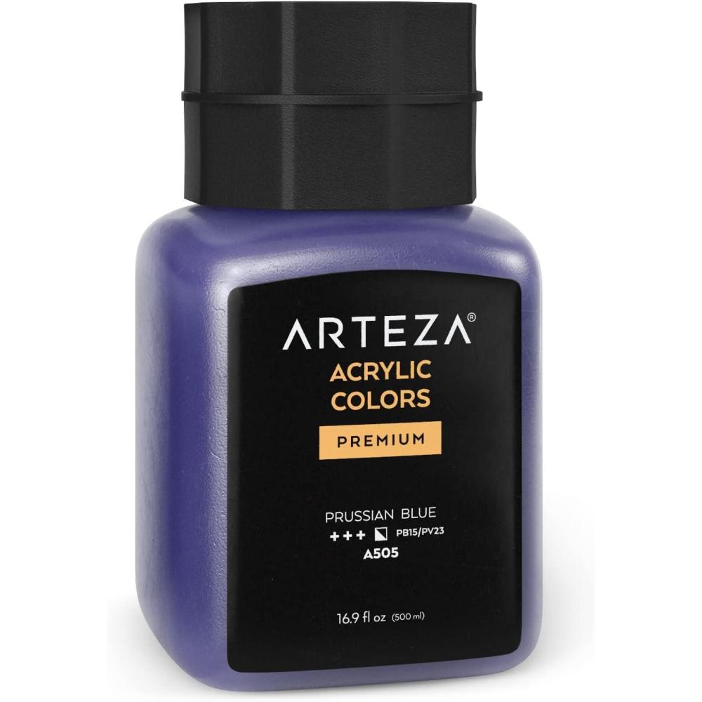 ARTEZA Acrylic Paint, A104 Yellow Ochre, 16.9 fl oz, 500ml Jar, Opaque, Quick-Drying, Acrylic Paints for Painting on Canvas, Paper, Wood(A505 Prussian Blue)