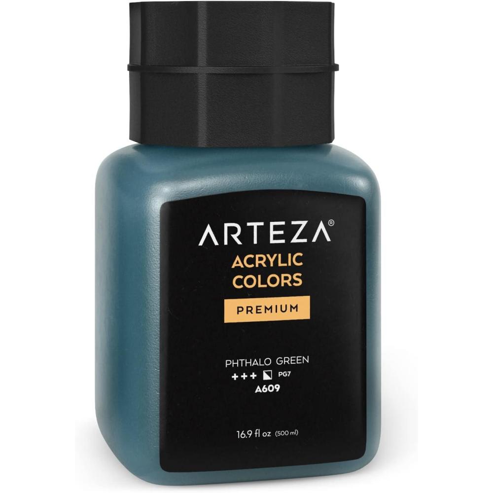 ARTEZA Acrylic Paint, A104 Yellow Ochre, 16.9 fl oz, 500ml Jar, Opaque, Quick-Drying, Acrylic Paints for Painting on Canvas, Paper, Wood(A609 Phthalo Green)