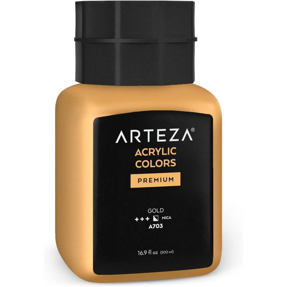 ARTEZA Acrylic Paint, A104 Yellow Ochre, 16.9 fl oz, 500ml Jar, Opaque, Quick-Drying, Acrylic Paints for Painting on Canvas, Paper, Wood(A703 Gold)
