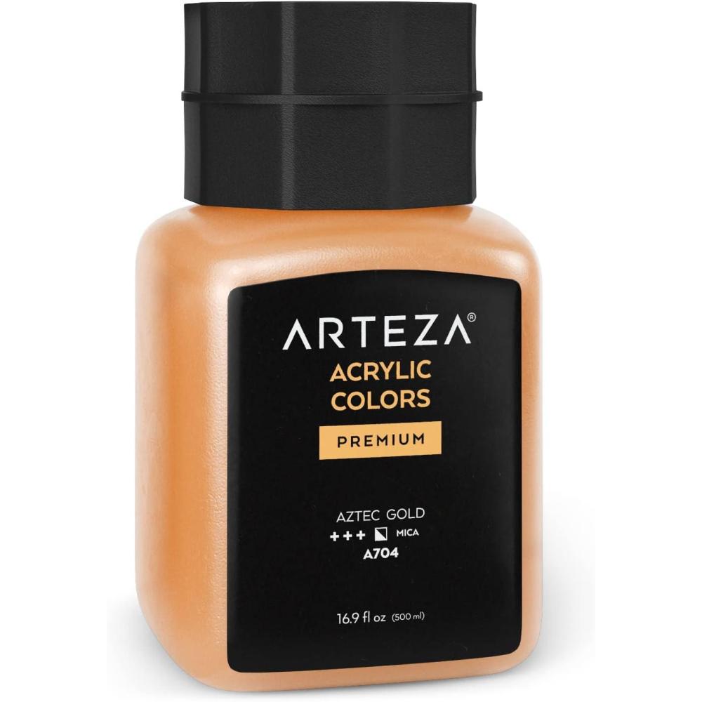 ARTEZA Acrylic Paint, A104 Yellow Ochre, 16.9 fl oz, 500ml Jar, Opaque, Quick-Drying, Acrylic Paints for Painting on Canvas, Paper, Wood(A704 Aztec Gold)