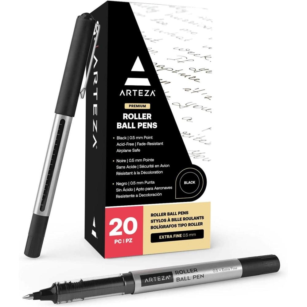 ARTEZA Rollerball Pens, Pack of 20 – Blue Liquid Ink Pens with 0.7 mm Fine Point for Note-Taking, Bullet Journaling, Office & School Writing Tasks(Black)
