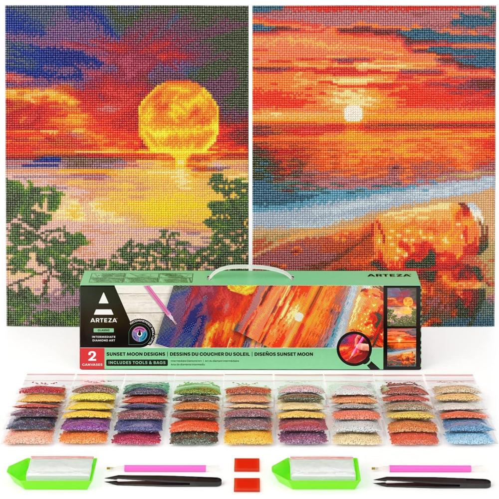 ARTEZA 5D Diamond Painting Kit, 2-Pack, Beach Designs, Full-Drill Diamond Art for Adults, 12 x 16 Inches Canvases, Round Rhinestones, & Painting Accessories, Bead Art Craft Supplies(Moon)