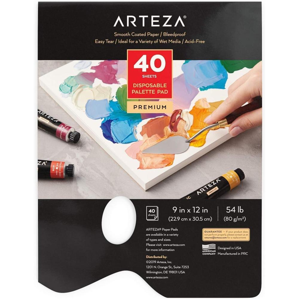 ARTEZA Disposable Palette Paper Pad, 9×12 Inch, Pack of 2, 80 Sheets, 54 lb, Glue-Bound, Bleed-Proof Paint Palette with Thumb Hole(9×12 Inch Pack of 1)
