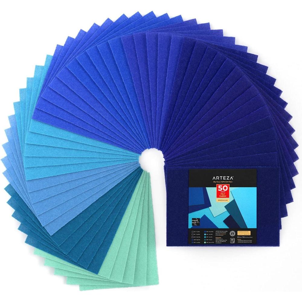 ARTEZA Blue Craft Felt Sheets, 8.3 x 11.8 Inches, Set of 50, 20 Soft and 30 Stiff Non Woven Felt Fabric for Sewing and DIY Projects