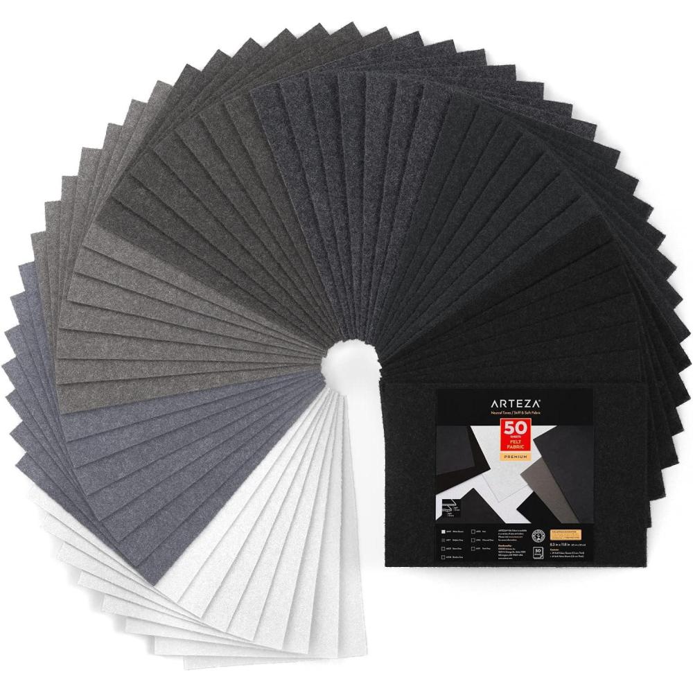 Arteza Craft Felt Sheets, Set of 50, 8.3 x 11.8 inches, 7 Neutral Tones, 21 Soft and 29 Stiff Non Woven Felt Fabric Squares, 1.5mm and 1.3mm Thick, Sewing Fabric for DIY Projects