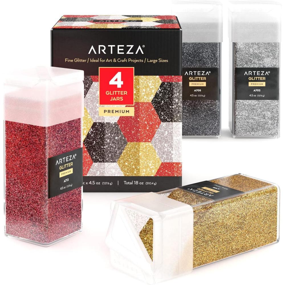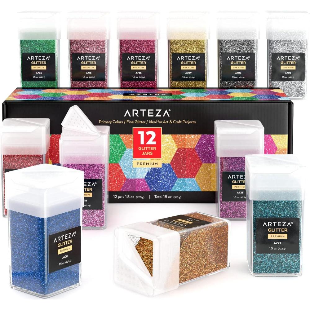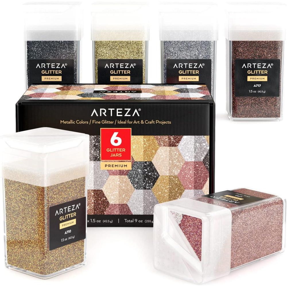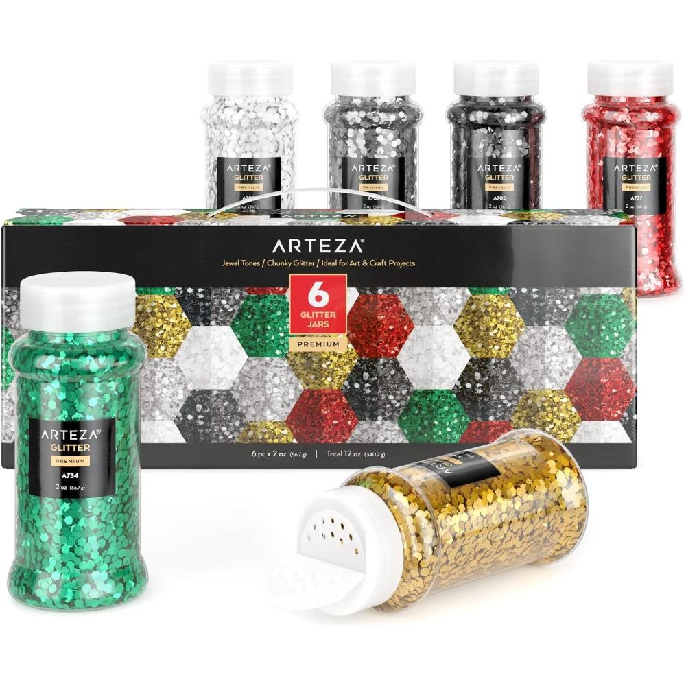 Arteza Fine Glitter Set, 6 x 2-oz Bottles, Ocean-Toned Glitter for Resin, Glue, Acrylic Paint, Arts and Crafts Supplies for Creating DIY Projects and Holiday Art(Jewel Tones)