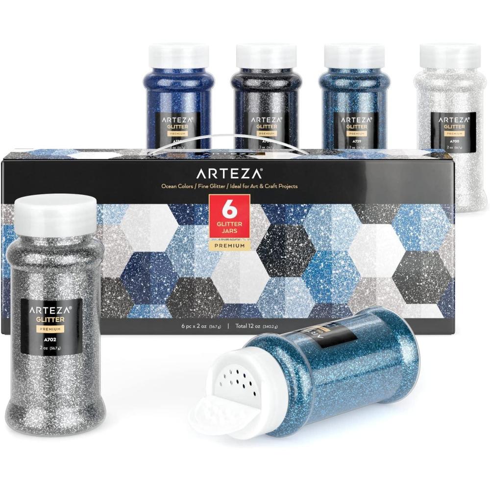 Arteza Fine Glitter Set, 6 x 2-oz Bottles, Ocean-Toned Glitter for Resin, Glue, Acrylic Paint, Arts and Crafts Supplies for Creating DIY Projects and Holiday Art(Ocean Colors)
