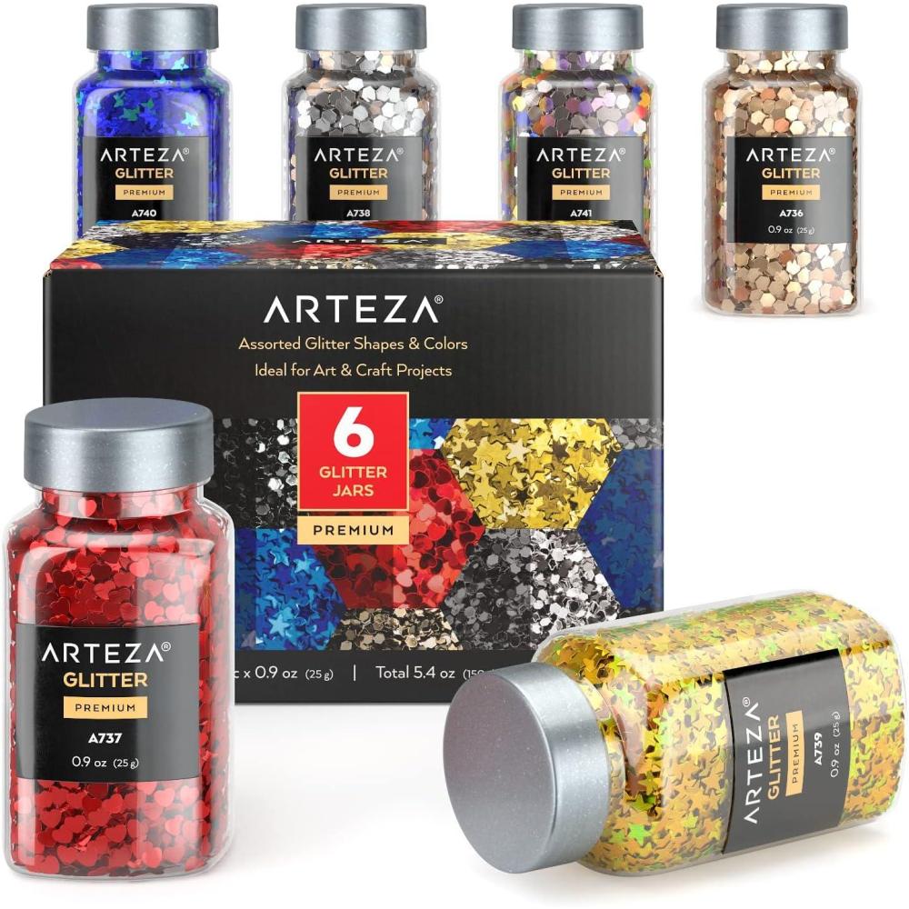 Arteza Glitter Shapes, Set of 6, Glitter for Resin in 0.9-oz Bottles, Glue, Acrylic Paint, Arts and Crafts Supplies for Creating School Projects, DIY Projects, and Holiday Art , Red(Multicolor)