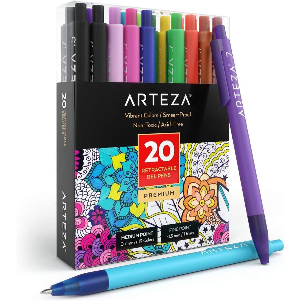 ARTEZA Gel Pens Colored Set of 20, Retractable Pens Assorted Colors for Writing in a Notebook, Journal, Planner(Assorted Colors)