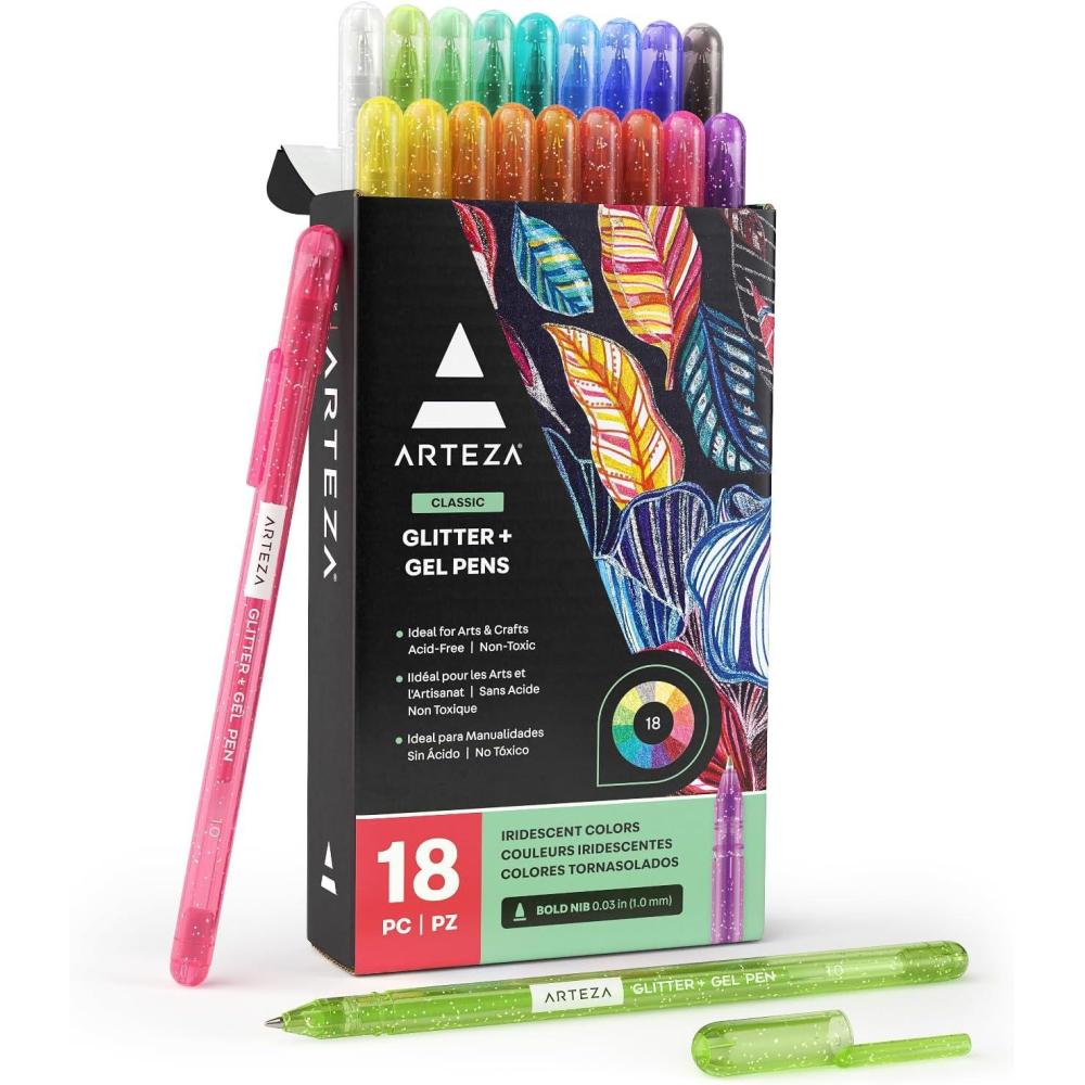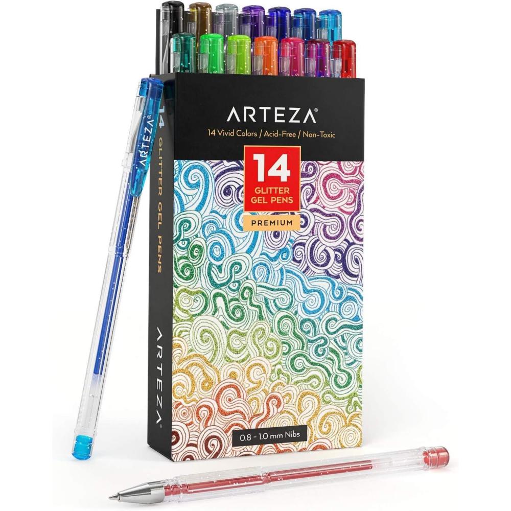 ARTEZA Glitter Gel Pens, Set of 14 – Colored Ink Markers with Triangular Grip, 0.8–1.0 mm Tip for Adult Coloring, Drawing & Decorative Writing(Glitter)