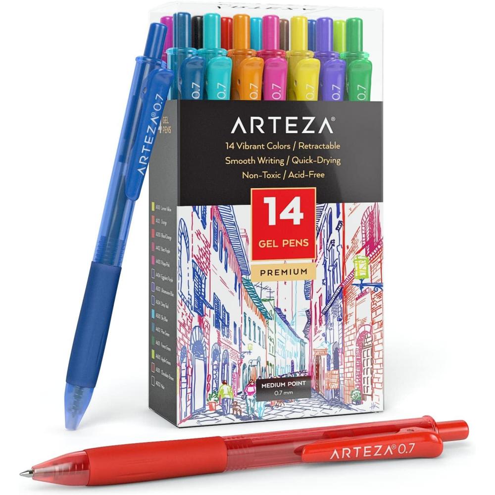 Arteza Colored Gel Pens, Pack of 24, 10 Vintage and 14 Vibrant Colors, Fine 0.7 mm Tip, Retractable, Art Supplies for Journaling, Drawing, Doodling, and Notetaking(1 Count (Pack of 14))