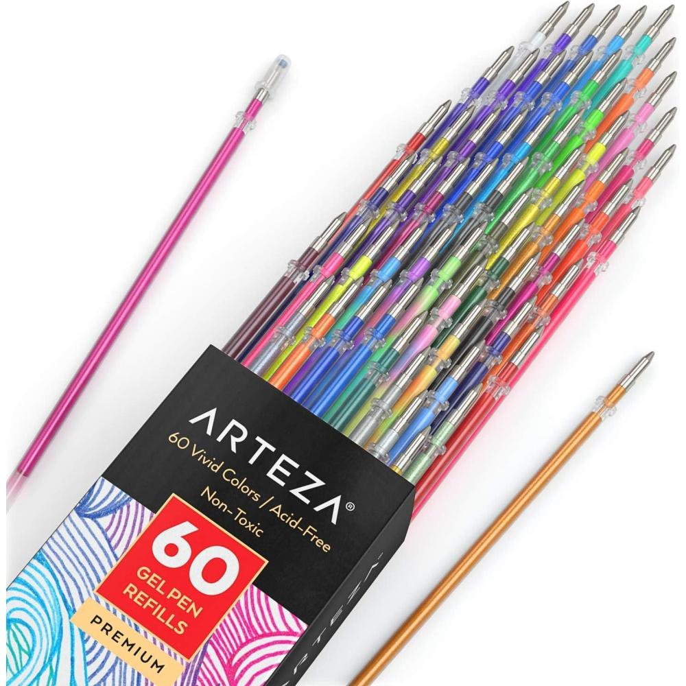 ARTEZA Gel Pens Ink Refills 60-Individual-Color-Bundle Acid-Free (0.8-1.0 mm Tips, Set of 60)(Set of 60)