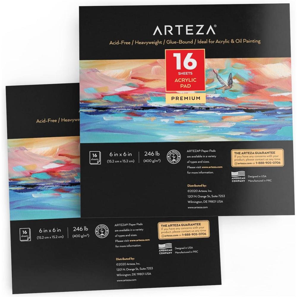 ARTEZA Acrylic Paper Pad, 6 x 6 Inches, Pack of 2, 16 Sheets Each, Heavy Black Art Paper Pad for Painting and Drawing(White)