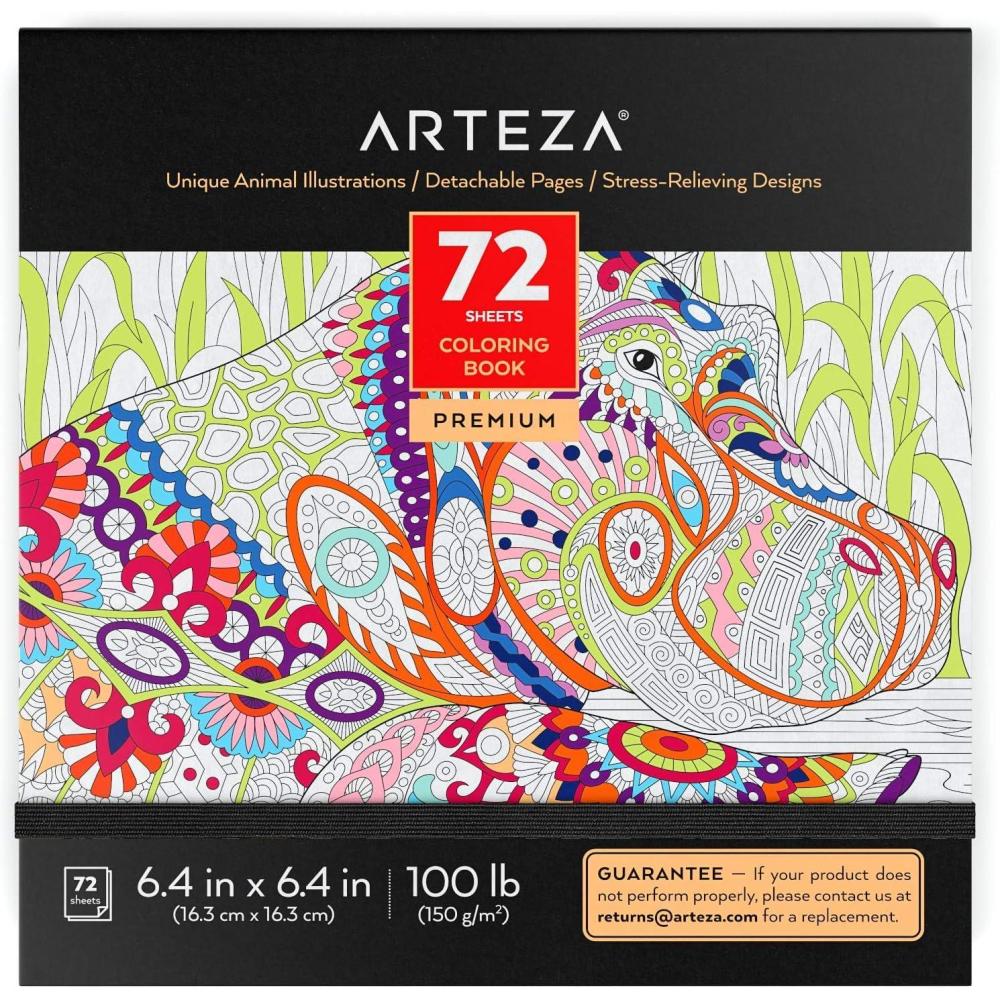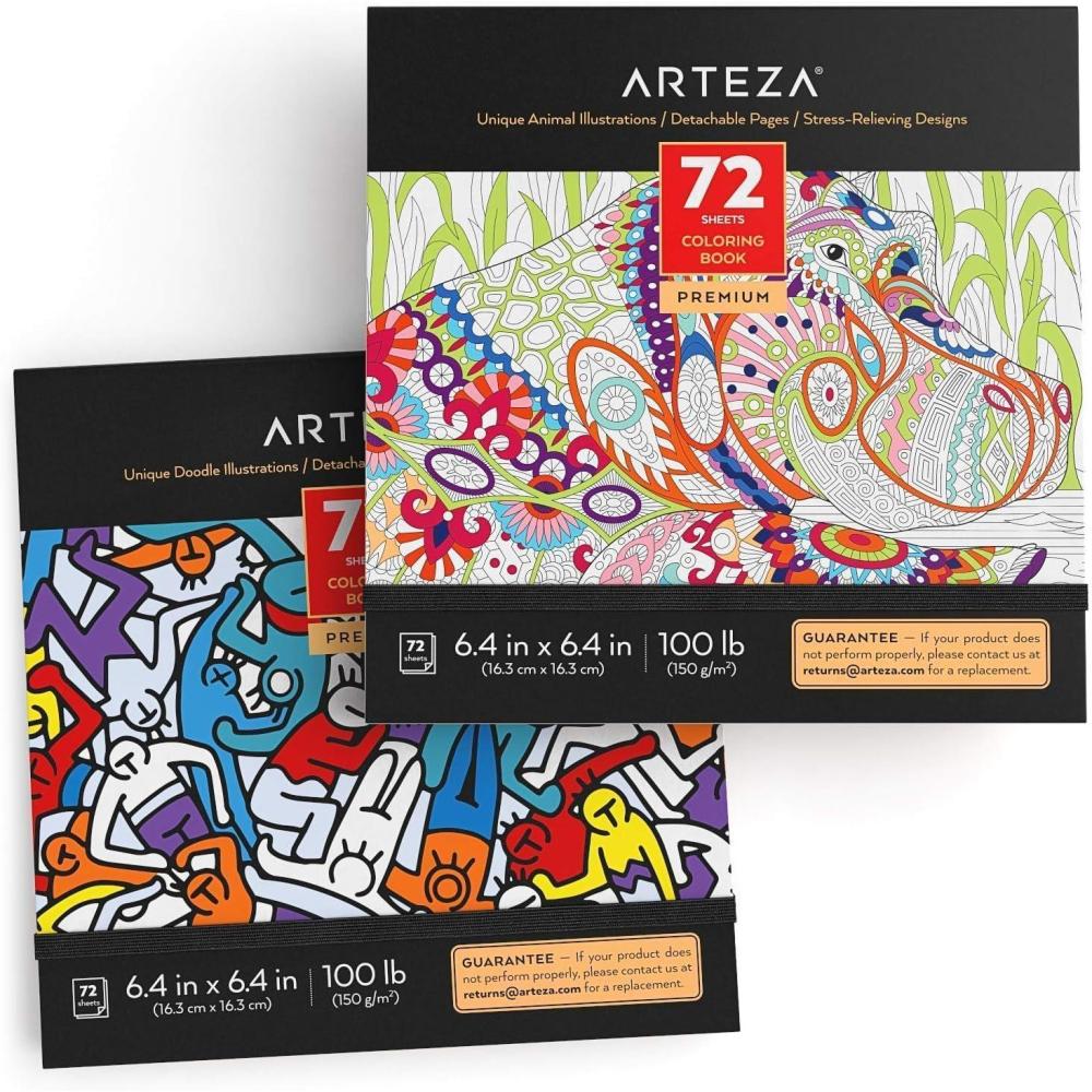 ARTEZA Adult Coloring Book, 4 Seasons Theme, 120 Sheets, 9×9 Inches Coloring Pages, 100 lb Paper(Animal & Doodle Designs)