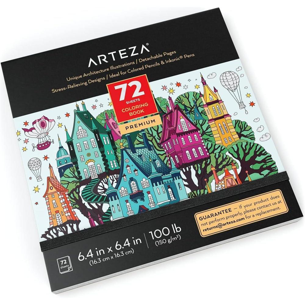 ARTEZA Adult Coloring Book, 4 Seasons Theme, 120 Sheets, 9×9 Inches Coloring Pages, 100 lb Paper(Architecture Designs)