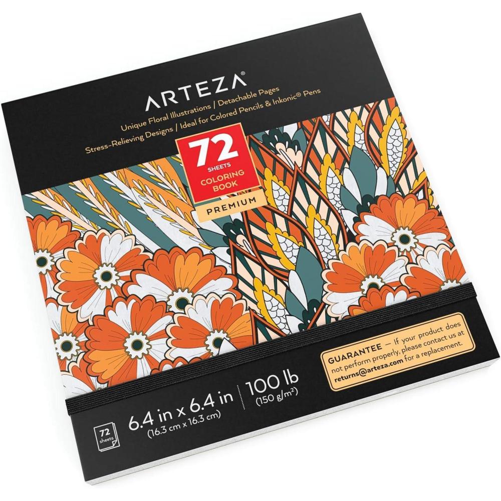 ARTEZA Adult Coloring Book, 4 Seasons Theme, 120 Sheets, 9×9 Inches Coloring Pages, 100 lb Paper(Floral Designs)