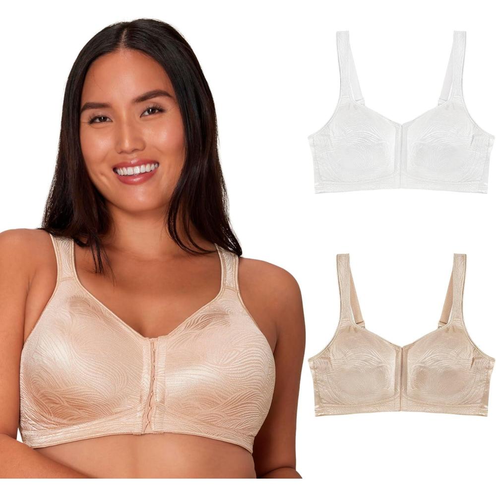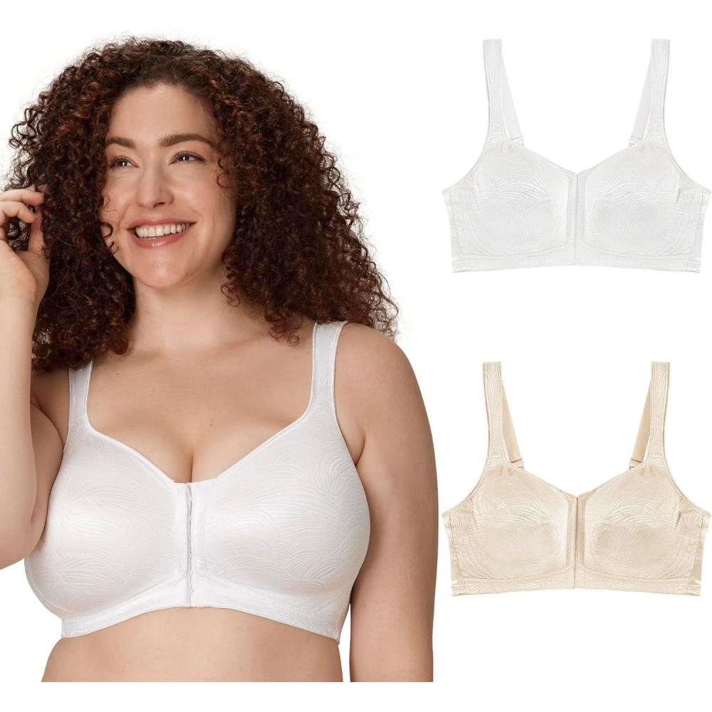 PLAYTEX Women’s Wireless Bra, 18 Hour Plus-Size Bras Available, Front Close, Extra Back Support, E525, Single or 2-Pack(White/Light Beige 2 Pack)