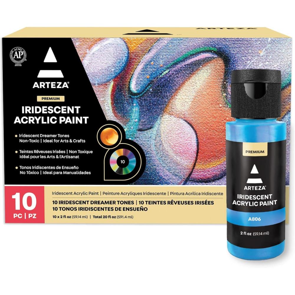 ARTEZA Iridescent Acrylic Paint Set – 10 Galaxy Tones, Shimmer Water-Based Paints for Canvas, Wood, Rocks, Fabrics, and Mixed Media Projects(10 x 60ml (2 fl oz) Dreamer Tones)