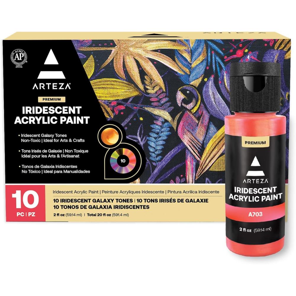 ARTEZA Iridescent Acrylic Paint Set – 10 Galaxy Tones, Shimmer Water-Based Paints for Canvas, Wood, Rocks, Fabrics, and Mixed Media Projects(10 x 60ml (2 fl oz) Galaxy Tones)