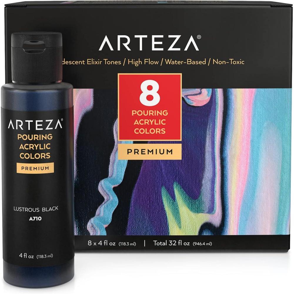ARTEZA Iridescent Acrylic Paint Set – 10 Galaxy Tones, Shimmer Water-Based Paints for Canvas, Wood, Rocks, Fabrics, and Mixed Media Projects(8 x 118ml (4 fl oz) Elixir Tones)