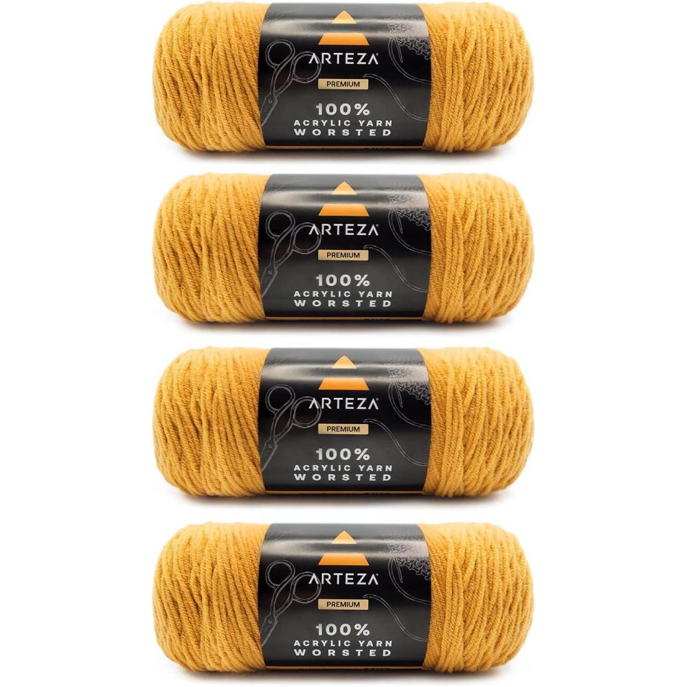 ARTEZA Acrylic Yarn for Crocheting, 4 x 200-g Skeins of Worsted Yarn for Knitting, Mossy A602, Knitting & Crochet Supplies(Going for Gold)