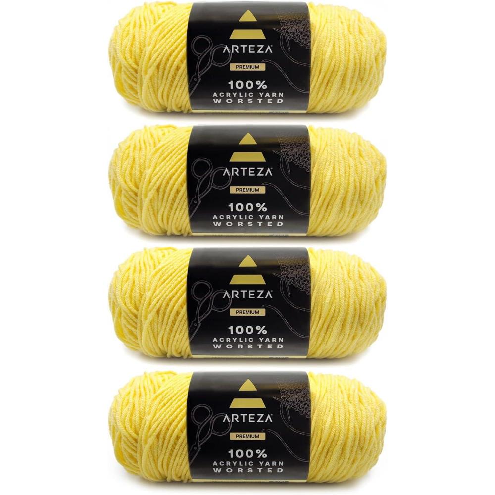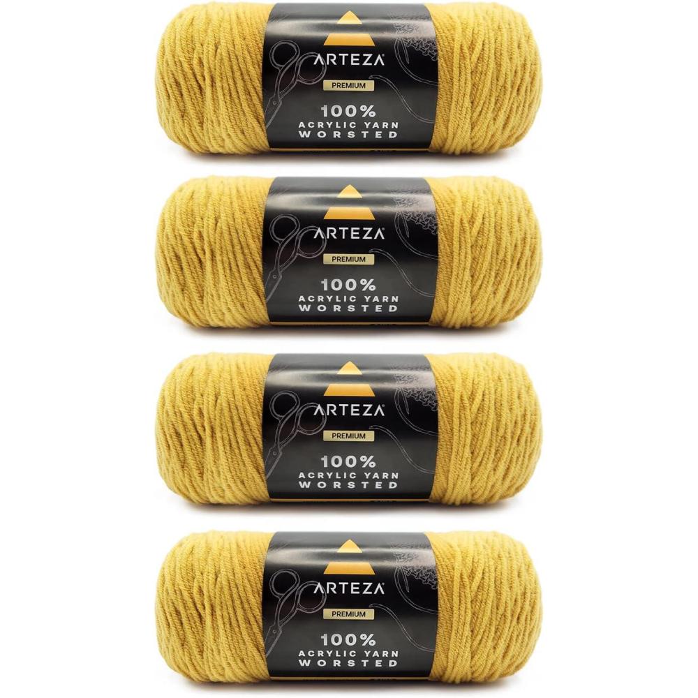 ARTEZA Acrylic Yarn for Crocheting, 4 x 200-g Skeins of Worsted Yarn for Knitting, Mossy A602, Knitting & Crochet Supplies(Hello Sunshine)