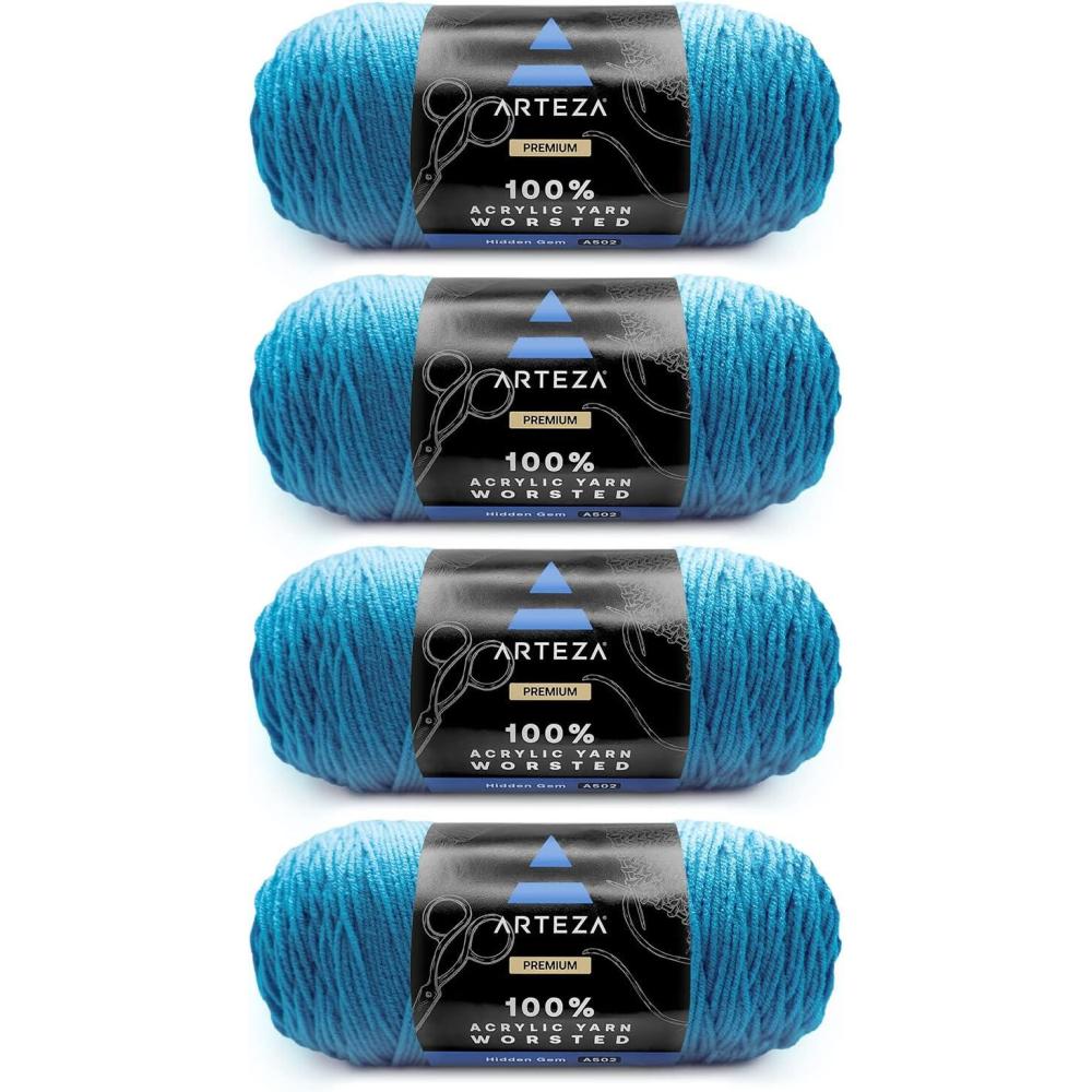 ARTEZA Acrylic Yarn for Crocheting, 4 x 200-g Skeins of Worsted Yarn for Knitting, Mossy A602, Knitting & Crochet Supplies(Hidden Gem)