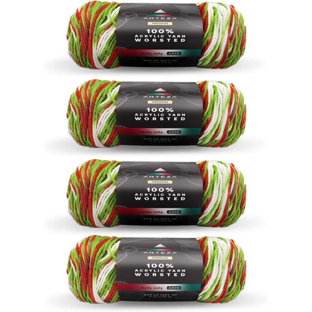 ARTEZA Acrylic Yarn for Crocheting, 4 x 200-g Skeins of Worsted Yarn for Knitting, Mossy A602, Knitting & Crochet Supplies(Holly Jolly)