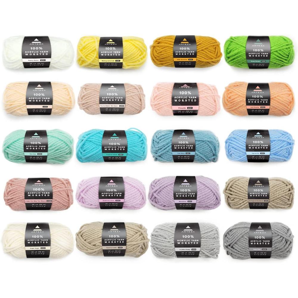ARTEZA Acrylic Yarn for Crocheting, 4 x 200-g Skeins of Worsted Yarn for Knitting, Mossy A602, Knitting & Crochet Supplies(Making Lemonade)