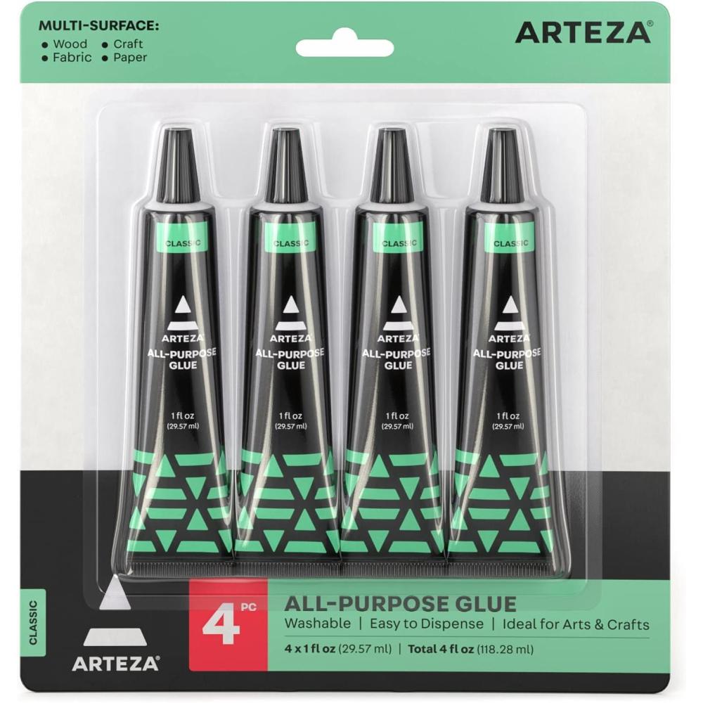 ARTEZA All-Purpose Craft Glue, 4-Pack, Fast-Drying Clear Glue for Crafts, Ideal for Wood, Fabric, Plastic, Glass, Metal, Ceramic, Jewelry, Model, Paper, Fabric Fusion and No Sew Projects