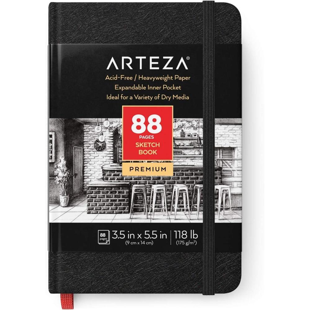 ARTEZA Hardcover Mini Sketch Book 3.5 x 5.5 Drawing Pad 2 Pack 88 Sheets Sketch Pads for Drawing for Adults & Teens(3.5×5.5″ 1 Pack)