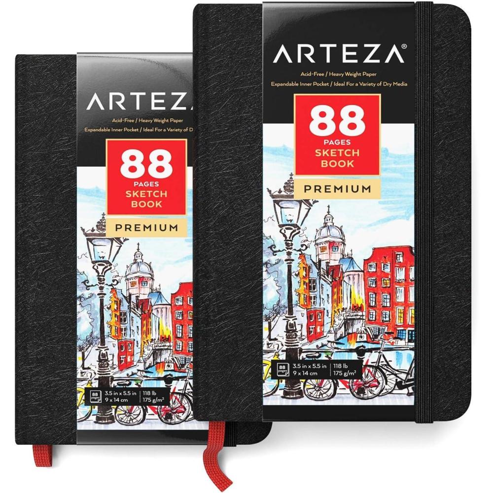 ARTEZA Hardcover Mini Sketch Book 3.5 x 5.5 Drawing Pad 2 Pack 88 Sheets Sketch Pads for Drawing for Adults & Teens(3.5×5.5″ 2 Pack)
